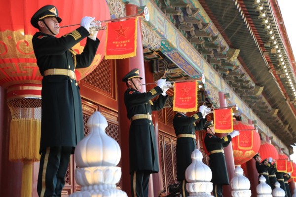 人民解放军仪仗队和军乐团威武出场,