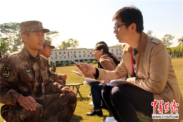 列兵韩治威(左)在接受中国青年报·中青在线记者采访。王佳奎/摄