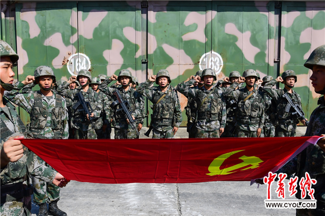 官兵决心用练兵备战的实际行动践行在党旗下的铮铮誓言。张腾/摄
