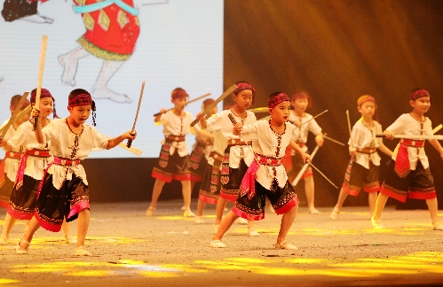 小学生表演景颇族“目瑙纵歌”节文化。李秋明 摄