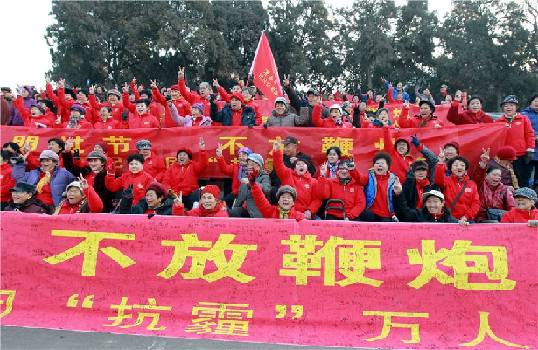 没有人会怀疑,中国人在春节期间燃放烟花爆竹既是传统文化的组成部分,也是传统民俗的重要活动。燃放烟花爆竹是老百姓一种表达喜庆、欢快心情的形式。殊不知,在一声声烟花爆竹震耳欲聋的巨响后面,存有许多危害。燃放烟花爆竹会产生二氧化硫、一氧化氮、二氧化氮等气体,这些有毒有害气体是无形的“杀手”。当硝烟弥漫时,这些气体对我们人体各个部位都有着一定的损害作用。不仅如此,为了所谓的年味,燃放烟花爆竹还会造成火灾、垃圾、伤人等事故。看看媒体上的报道,各地每年春节期间都会有因燃放烟花爆竹而造成的意外事故。当一种民俗已给人们生活带来巨大不安和隐患的时候,我们已经没有民坚持的理由,应当摒弃。