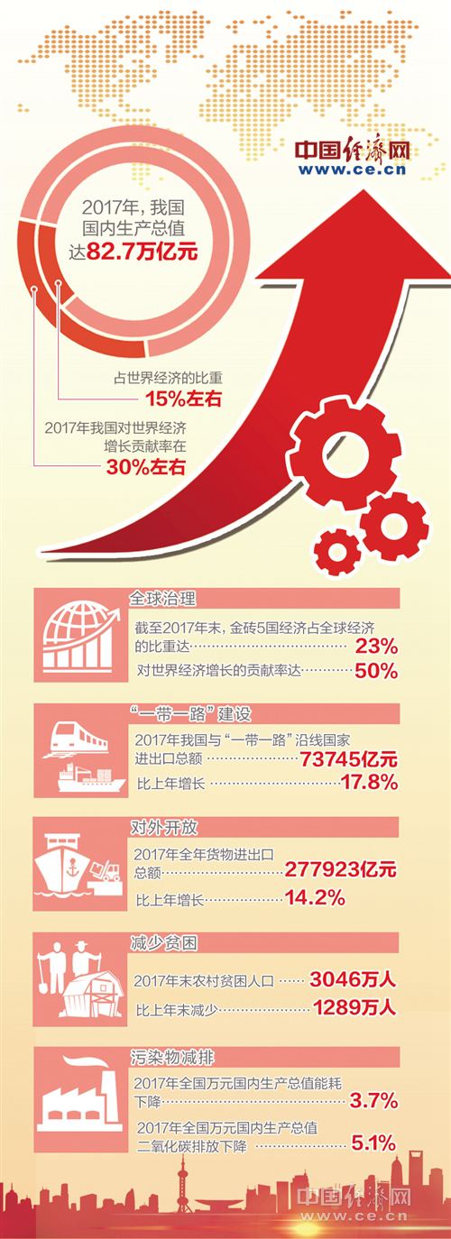 2017年,我国经济交出亮丽“成绩单”。国内生产总值(GDP)首次迈入80万亿元大关,6.9%的增速是我国经济年度增速自2011年下行以来的首次回升。值得关注的是,中国的发展不仅让国内人民受益,对全球经济增长的贡献率也在不断提升。根据测算,中国对世界经济增长的贡献率在30%左右。