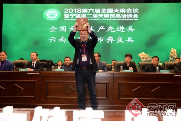 11月23至25日,以“赋能产业 聚力健康 助推扶贫”为主题的“2018第六届全国天麻会议”在陕西汉中宁强召开,云南彝良县被授予“全国天麻生产先进县”称号。(11月26日 昭通新闻网)