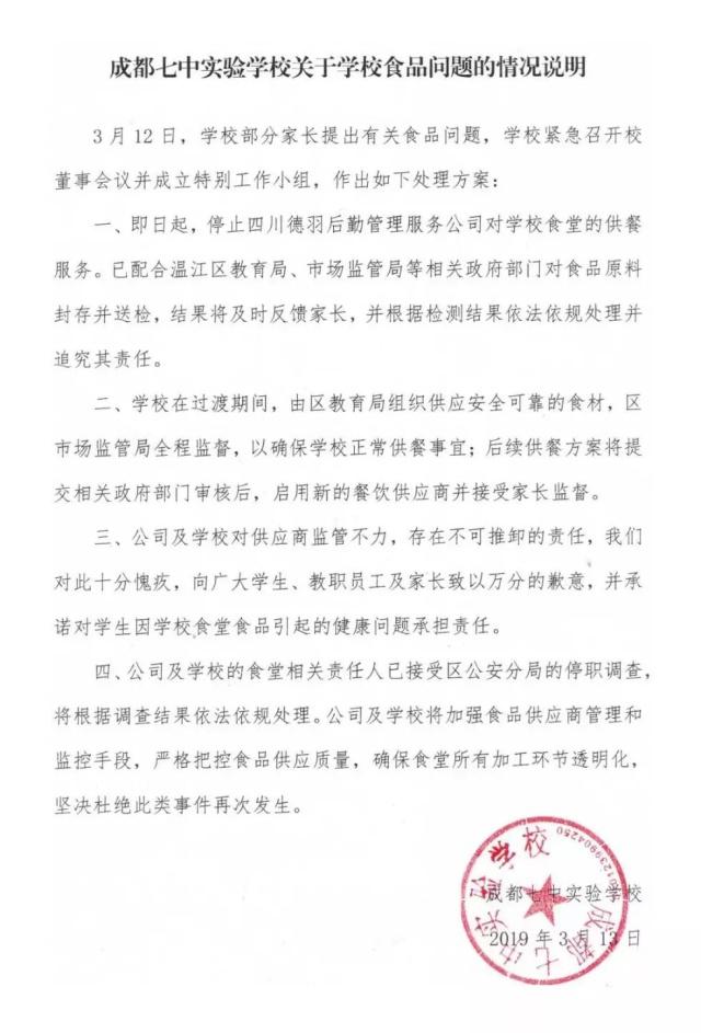 3月12日下午,部分学生家长反映成都七中实验学校小学部食堂食品质量问题引发社会关注。