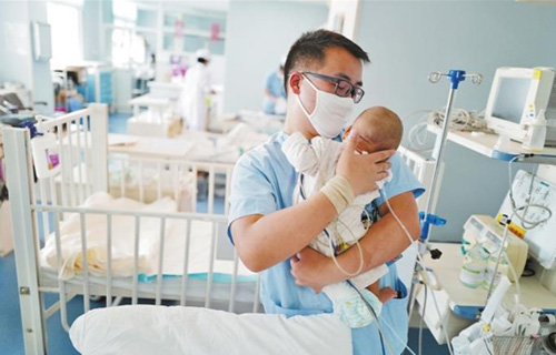 一护士在照顾孩子。记者 陈飞 摄