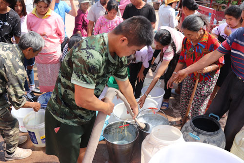 消防队为村民送水 记者 彭锡 摄