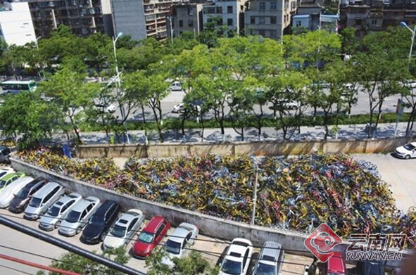 共享单车堆积如山。 记者 刘嘉 摄
