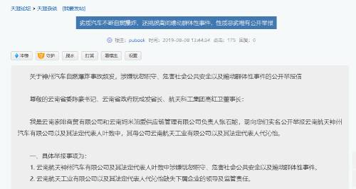 相关方面是否及时介入,调查处理又是否有力启动,我们暂且不得而知。不过,至少可以确定,因“问题新能源汽车”引发的一系列问题还没得到妥善解决。因为,客户还在以“实名公开举报”的方式进行维权。