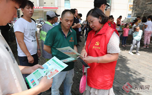 祥云社区党支部党员志愿者为社区群众开展垃圾分类知识宣讲。记者 杨峥 摄