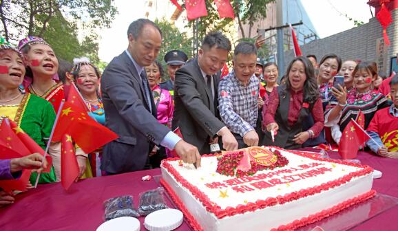 昆明官渡倡导新民俗,千人同吃长街面祝福祖国。