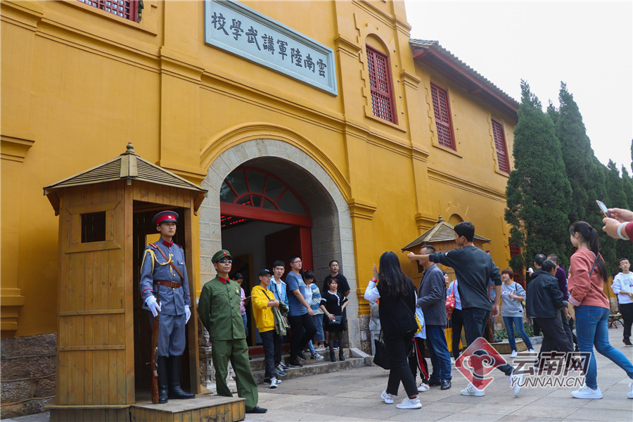 云南陆军讲武堂是中国近代史上的著名军校,110年前秉承“坚忍刻苦”的校训,矢志不渝、潜心办学,为战乱迭起的近代中国输送了近万名军事人才,在辛亥革命、护国战争、北伐战争、抗日战争和解放战争中持续贡献力量,成为人才辈出、名扬海内外的“将帅摇篮”和“革命熔炉”。110年后的今天,历经沧桑却保存完好的讲武堂遗址,成为极具代表性的历史文化名片,先后被命名为“全国爱国主义教育示范基地”“国家国防教育示范基地”等称号,当然也是响当当的3A级“红色旅游经典景区”,慕名而来的观众逐年递增。时下,正值祖国70华诞大庆,空前隆重的阅兵仪式,让国人倍感自豪,无疑将红色旅游推向高潮。讲武堂红色基因内涵本就丰富,不少家长带孩子到此打卡是自然而然之事。