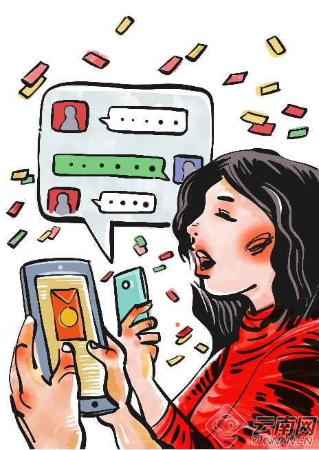 “互联网+”春节,“红包”的概念发生改变,人们热衷网络上抢红包。何沐/绘