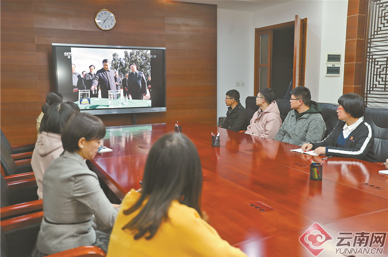1月21日,云南师范大学组织师生集体收看央视播出的习近平总书记到云南考察的新闻。同学们看后纷纷表示要发扬西南联大的优秀传统,为中华民族伟大复兴贡献自己的力量。记者 黄喆春 摄