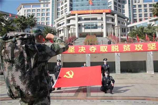 “背包工作队”向党旗庄严宣誓。通讯员 王靖生 顾泽贤 供图