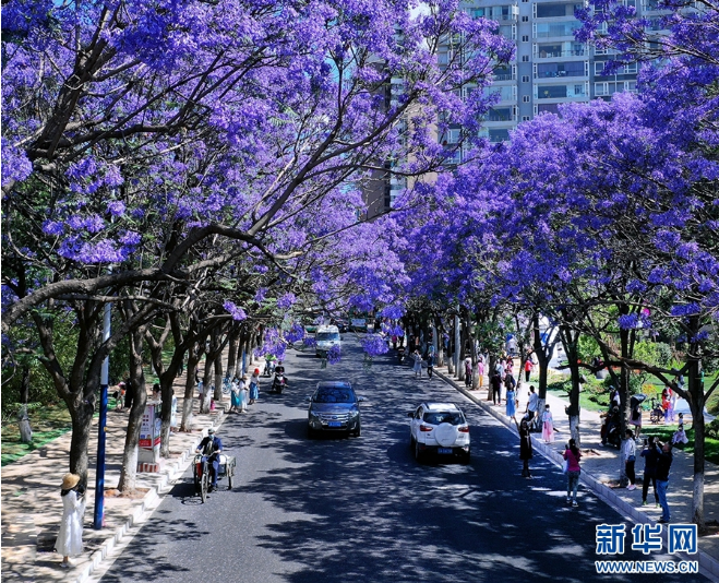 5月5日,航拍视角下的昆明街道。新华网 崔永江 摄