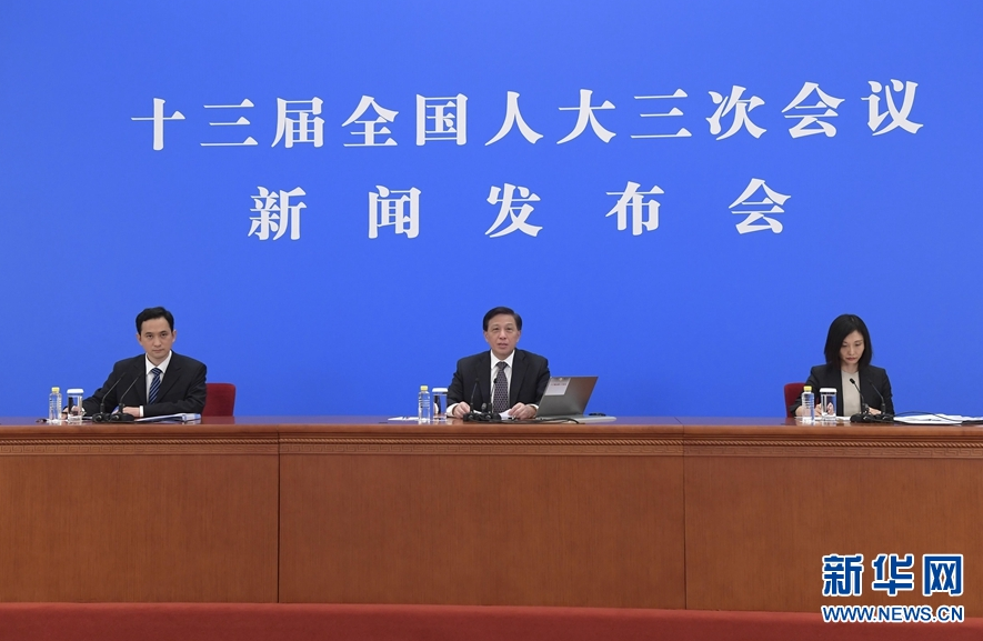 十三届全国人大三次会议新闻发布会现场。新华社记者 李贺 摄