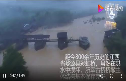 其实,古桥等文物严重受损,除了持续强降雨造成古桥长时间、高水位浸泡,一旦遭受洪水冲击极易受到损毁原因外,也不能排除人为因素。比如近年部分乡村公路和民房建设违规操作,导致河道缩窄、洪流湍急,增大文物“水毁”风险。以及一些地方古桥维修加固项目推进缓慢,错过枯水期最佳维修时段。除此之外,资金投入不足,政绩观扭曲,也是古桥保护不力或不被重视的一个原因。