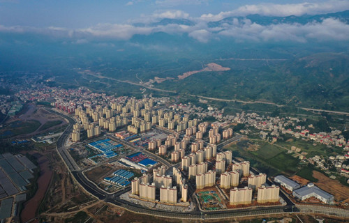 8月21日拍摄的云南昭通靖安易地扶贫搬迁安置区(无人机照片)。 新华社记者 刘大伟 摄。