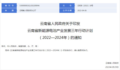 日前,云南省政府印发《云南省新能源电池产业发展三年行动计划(2022-2024年)》,提出力争到2022年新能源电池产业实现产值200亿元,到2024年全产业链产值突破1000亿元。云南的新能源电池产业发展,正在迎来千载难逢的历史机遇。