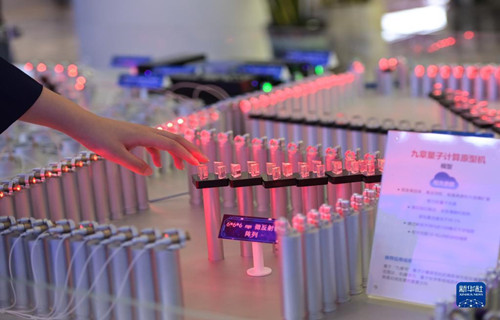 2021年9月18日,参会人员在2021量子产业大会上参观“九章”量子计算原型机模型。记者 杜宇 摄。