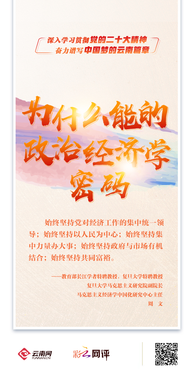 站在“两个一百年”奋斗目标交汇的新的历史起点和新的征程,看清楚过去我们为什么能够成功、弄明白未来我们怎样才能继续成功。对此,尤其需要从理论上解读好“中国共产党为什么能”的成功密码,从而让中国共产党为什么能从道理上升为系统化的学理。现在来看,中国共产党之所以能始终屹立不倒、立于不败之地;中国共产党之所以能从根本上改变中国人民的命运、团结带领中国人民不断走向繁荣富强;中国共产党之所以能引领中华民族实现伟大复兴、巍然自立于世界民族之林、昂首屹立于世界的东方,就在于中国共产党始终坚持党对经济工作的集中统一领导作为发展的根本保证;始终坚持以人民为中心的发展思想作为发展的根本立场;始终坚持集中力量办大事作为发展的关键所在;始终坚持政府与市场有机结合作为破解发展难题的必由之路;始终坚持共同富裕作为发展的根本归宿;坚持和发展中国特色社会主义,创造了中国式现代化道路,创造了人类文明新形态。