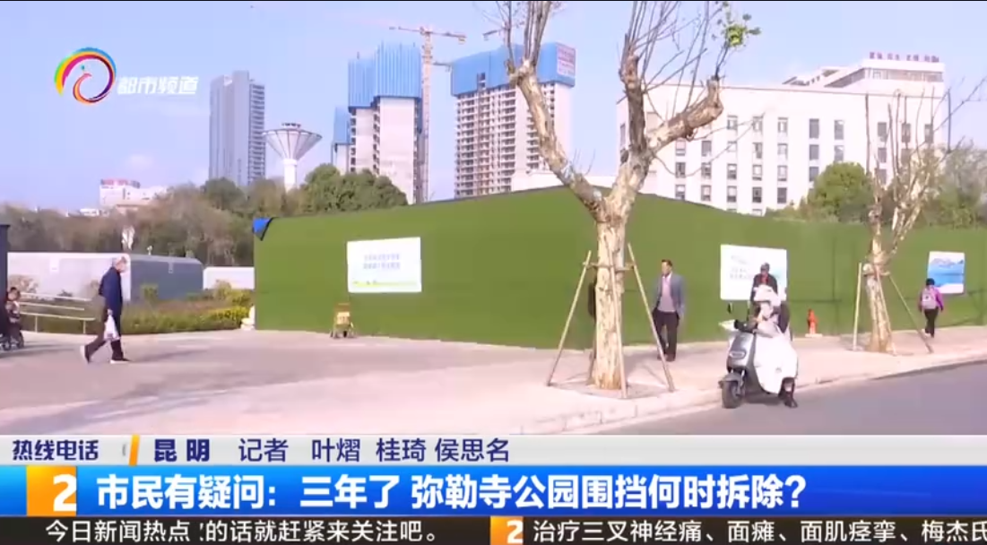 最近,有昆明市民反映:弥勒寺公园门前的地铁施工围挡已持续了3年之久,如今,地铁5号线已开通运营,弥勒寺站也投入使用,但施工围挡依然健在,行人每每走过,不得不和非机动车并道而行,安全隐患不小。