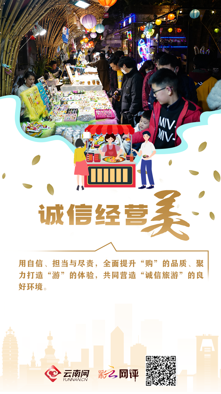 诚信乃营商之根本、服务之保障。应该看到,旅游产业归根结底服务于人,推动旅游市场稳步复苏、持续回暖,口碑是第一位。商家究竟是诚信待客、货真价实,还是短斤缺两、坑蒙拐骗,都直接影响着广大游客的旅游体验。近年来,云南深入推进“旅游革命”,从创新推行“30天无理由退货”,到制定出台《云南省涉旅企业诚信评价工作实施方案》,再到正式发布《加强旅游市场秩序整治若干工作措施》,一系列务实举措、有力行动,让诚信经营之风吹遍充满生机活力的云岭大地。