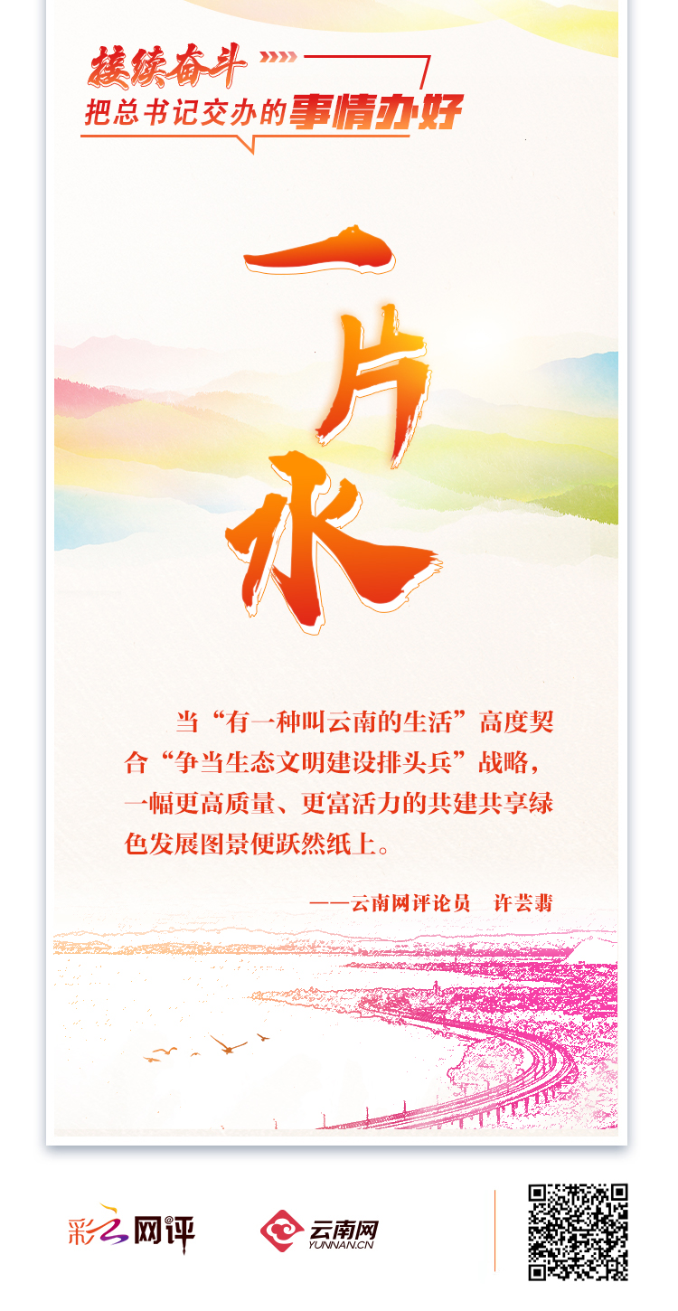 路阻且长,行则将至。从一片水到全省生态文明建设,牢记嘱托,接续奋斗,把总书记交办的事情办好,坚定不移走生态绿色高质量发展道路,让高颜值扮靓“有一种叫云南的生活”,争当全国生态文明建设排头兵,为美丽中国建设贡献云南力量。