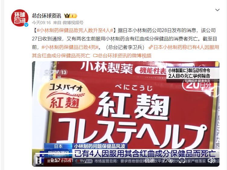 近日,日本药企小林制药含有红曲成分的保健品召回事件,引发关注。3月27日晚,小林制药(中国)有限公司发布协助小林制药株式会社自主召回使用红曲原料相关产品的声明称,本次自主召回涉及的三款产品均未在中国大陆市场上市销售,有中国消费者通过海外跨境平台、境外实体店铺或是其他渠道购买了相关产品,对此,小林制药将提供产品回收的协助。