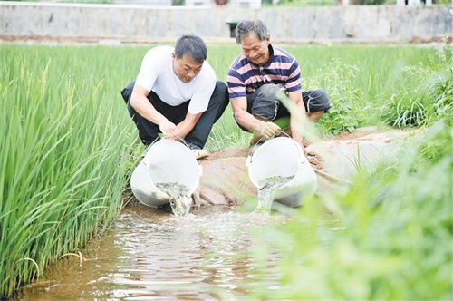 投放鱼苗。尹永权 摄