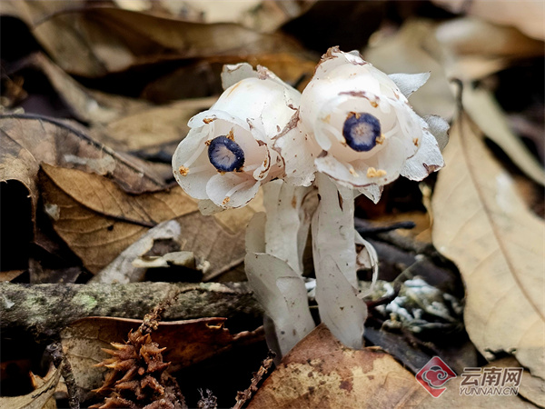7月29日下午,四川昆虫学家、成都华希昆虫博物馆馆长赵力在云南哀牢山考察时,在原始森林中发现7株被称为“冥界之花”的罕见物种——水晶兰。