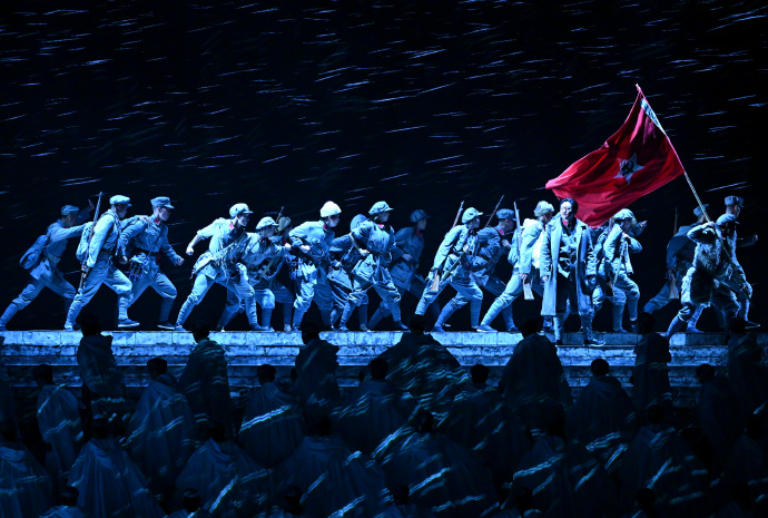 无论是“怒吼吧,黄河”“红星照耀中国”“不可战胜的力量”“共同的黎明”“正义永恒”5个篇章,还是从《松花江上》的悲怆追忆到《黄河大合唱》的振奋激昂,这一场晚会既承载民族记忆,又焕发时代生机,在历史叙事中构建起情感共鸣的桥梁。而80后艺术家领衔,90后编导与00后演员占比超半数,他们以当代视角挖掘历史细节,用故事、用人物、用真实情感说话,不仅让历史超越教科书上的符号,成为可感可知的精神血脉,更让人们看见并真切感知血脉在延续、精神在传承。