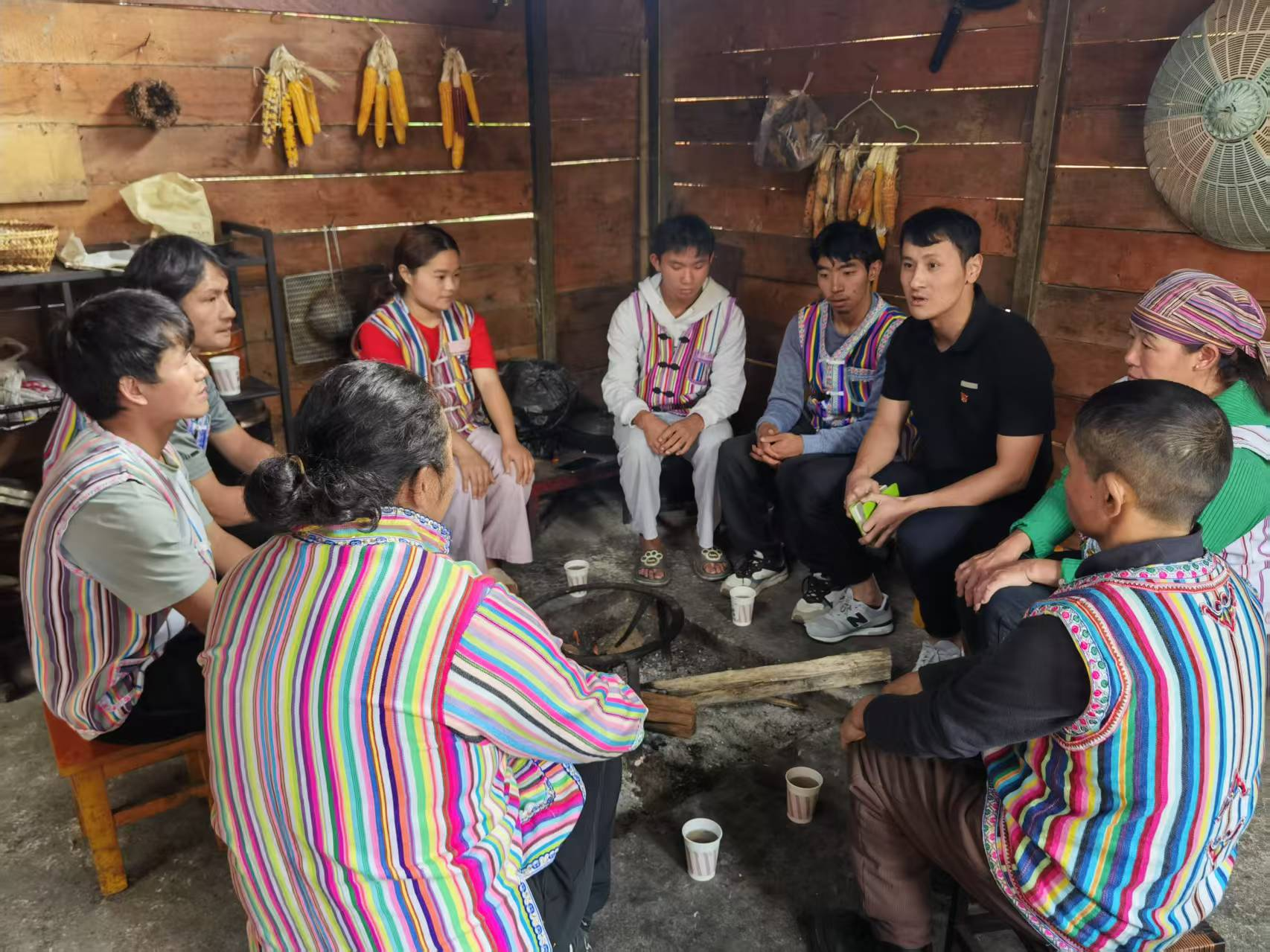 独龙族群众在火塘边听四中全会精神宣讲。李寿华摄