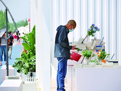 昆明市海埂大坝十里书香长廊上,读者感受阅读之美。记者 徐鑫雨 摄