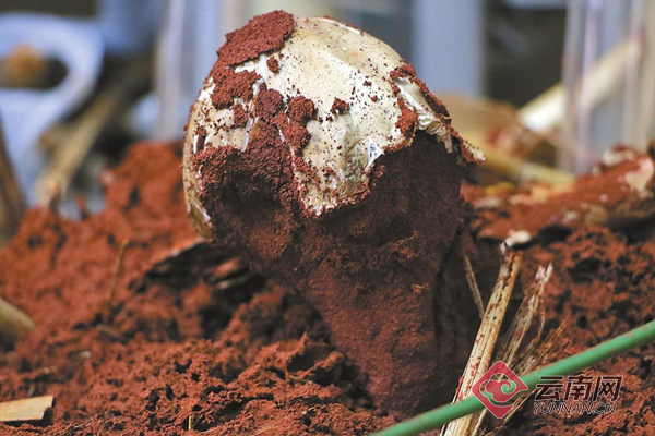 昆明市林草科研所通过人工养殖白蚁巢培育出鸡枞菌。
