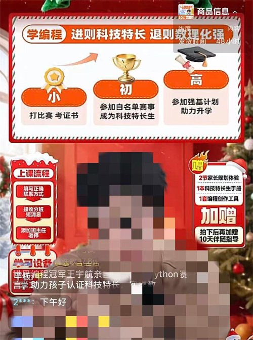 少儿编程培训机构一边信誓旦旦承诺“不满意随时退”“竞赛获奖助力升学”,一边暗藏“超过3次课不予退费”的霸王条款,甚至发放毫无含金量的证书忽悠家长。这些“坑”之外,从承诺“保送清北”到“三天拿证”速成神话的宣传内容已涉嫌违反《中华人民共和国广告法》与《中华人民共和国消费者权益保护法》。同时,此类宣传往往规避监管,在私域流量和社交媒体上大肆传播,形成“监管盲区”中的灰色产业链。第三方平台超1600条投诉,足以说明少儿编程培训已成消费纠纷重灾区。