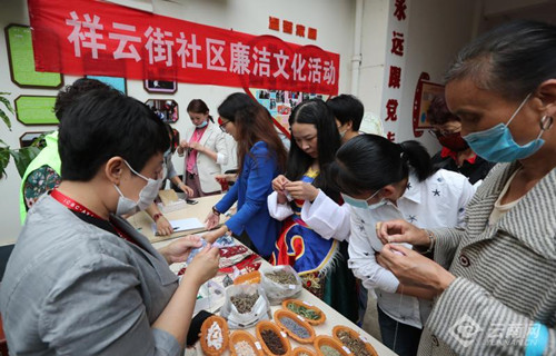 志愿者和社区居民参加香包现场制作,体验端午文化魅力。来自云南网报道截图。