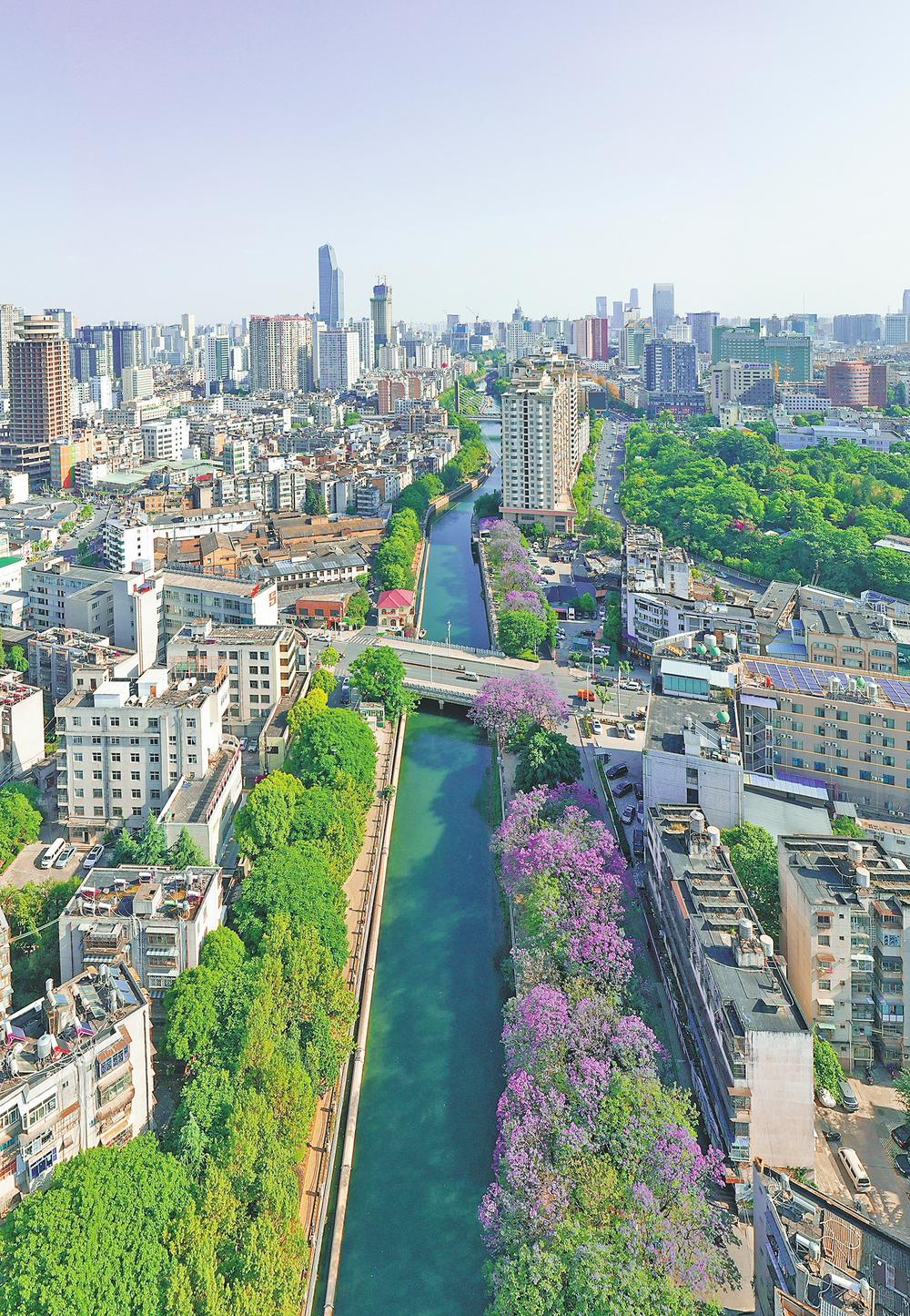蓝花楹扮靓盘龙江 记者 陈飞 摄