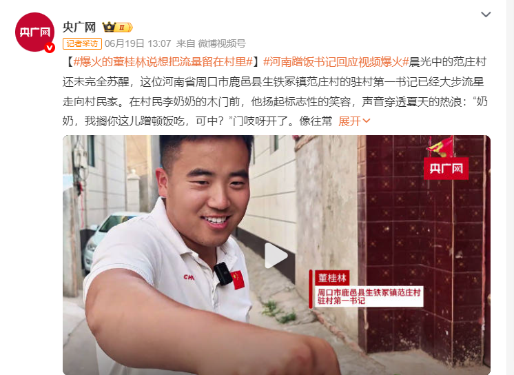最近一段时间,河南出现了两位网红,“蹭饭书记”董桂林和“卖菜西施”李富贵,有网友称,每当看到他们的视频,心中便总有暖流涌动。