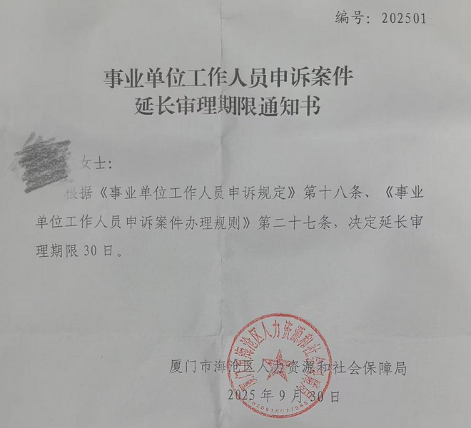 近期,厦门市海沧区幼师林芳(化名)被举报携带地中海贫血(简称“地贫”)基因遭解聘一事有了最新进展。厦门市海沧区人力资源和社会保障局对其申诉案件作出决定,因“案情复杂”延长审理期限30日。2024年4月,林芳通过笔试、面试及招聘指定体检,成功入职厦门市海沧区教育局下属幼儿园,成为在编教师。2025年5月,林芳被举报“患有地中海贫血且隐瞒病史”,当地教育部门依据《福建省教师资格申请人员体检标准》中的相关条款对涉事老师予以解聘。