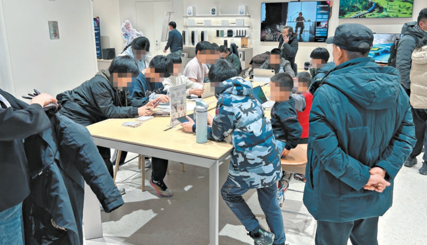 工作日放学时段及周末,手机专卖店里常常聚集着一群学生,他们将店内样机当作游戏机把玩,原本用于产品展示的门店,俨然成了孩子们的免费“网吧”。近日有媒体报道,在北京多家购物中心的手机店内,此类未成年人扎堆玩手机的现象十分普遍。门店一方频频以“管不了”为由推脱,另一方却暗中为孩子玩游戏提供便利,态度耐人寻味。